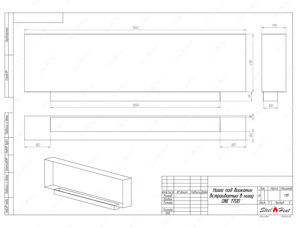 Встраиваемый Биокамин SteelHeat ONE-V 1700 предназначен для встраивания в глухие ниши из гипсокартона, кирпича, пеноблоков, бетона.